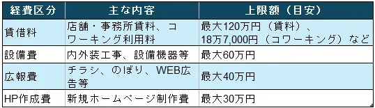 ・賃借料・設備費・広報費・ホームページ作成費に幅広く使える